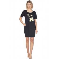 Koszula nocna z krótkim rękawem - z wysokiej jakości materiału - dekolt w kształcie litery "V" wykończony ozdobną taśmą - pakowana w pudełko Skład: 95% modal, 5% elastan