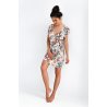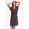 Letnia koszula damska - wysokiej jakości bawełna - ozdobiona kwiatowym printem - rękaw typu motylek wykończony falbaną - duży dekolt w kształcie litery "V" ozdobiony satynową kokardką - długość przed kolano Skład: 95% wiskoza, 5% spandex