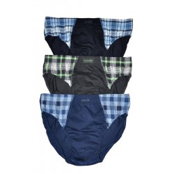 Slipy męskie - wysokiej jakości bawełna - po bokach wstawki w kontrastującym kolorze w kratkę - w pasie wygodna, nieuciskająca guma - pakowane w pudełko po trzy sztuki Skład: 100% bawełna