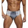 Slipy męskie - wysokiej jakości bawełna - po bokach wstawki w kontrastującym kolorze w kratkę - w pasie wygodna, nieuciskająca guma - pakowane w pudełko po trzy sztuki - dostępne kolory: grafitowy, granatowy Skład: 100% bawełna