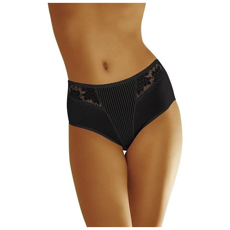 - z przodu wstawki bawełny w delikatny prążek i ażurowej koronki